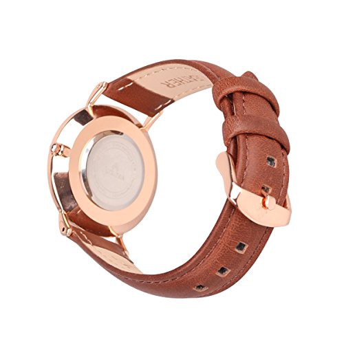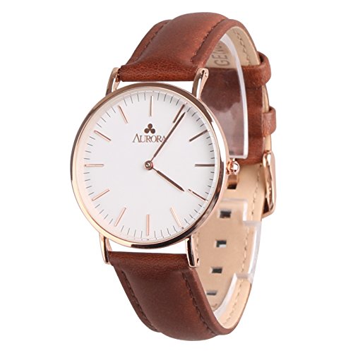 -. Title : Aurora Women's Metal Retro Casual Round Dial Quartz Analog Wrist Watch with Brown Leather Band-Rose Gold