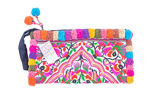 -. Brand : changnoi -. Color : White -. Department : womens -. Feature : Handmade by Thai Artisan Women / Hmong Hill Tribe Embroidered Design / Make Up / Cosmetic / Wristlet Travel Bag / Decorated with Handmade Pom Poms / Length: 11" (28.5) Height: 6" (16cm) -. Model : HM-4-WP.3AMULPP.3 -. ProductGroup : Shoes -. ProductTypeName : HANDBAG -. Size : Small -. Title : Changnoi Colorful Pompoms Handmade Embroidered Clutch Bag Made by Thai Hmong Women