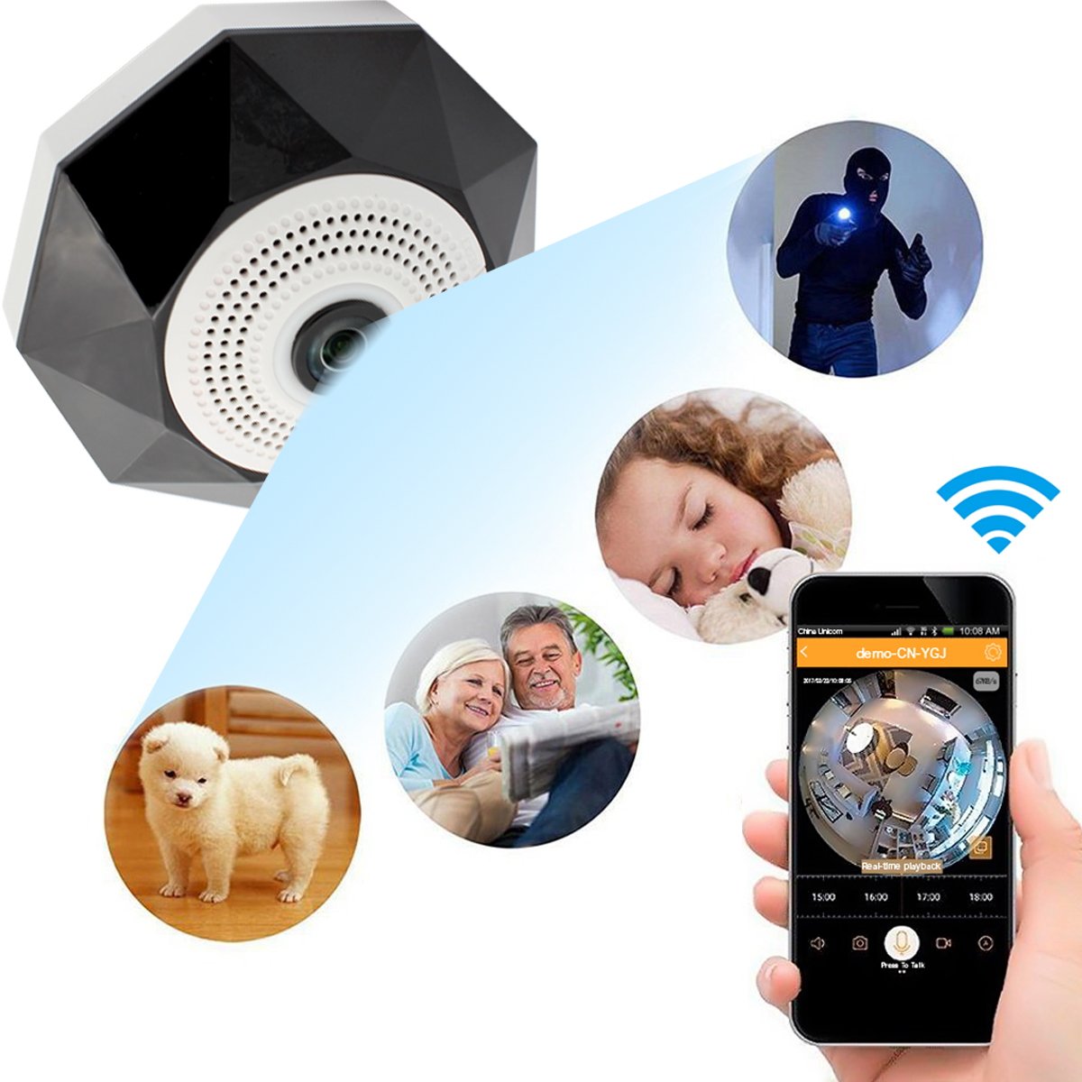 Security Wireless Spy Camera wifi Fisheye Lens IP Panorama Night Vision 360 degree Bi-Directional Audio Monitor Baby Elderly Pet