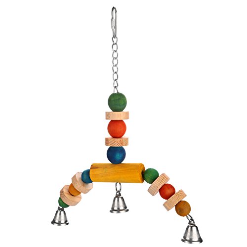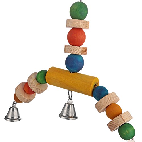 Aigou Wooden Bird Swings Perches with Bells Hanging Toys 8.5'' by 11.5'' for Parakeet Budgie Cockatiel Small