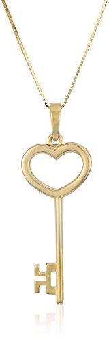 Necklace in 14k gold featuring heart-shape key pendant suspended from plain, polished bail