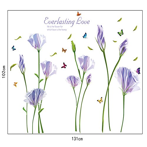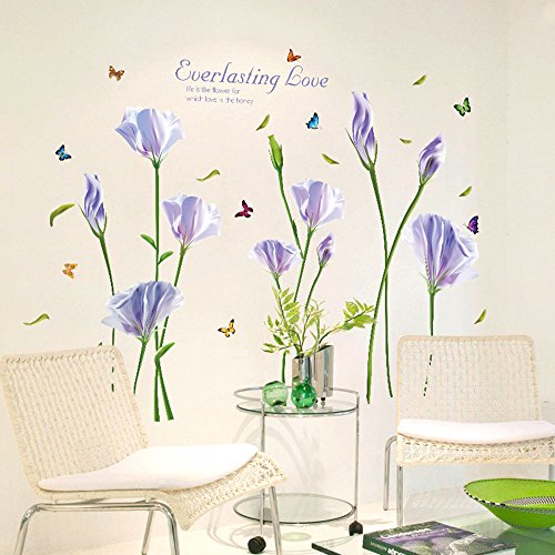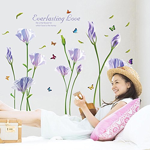-. Title : Ufengke Beautiful Purple Flower Wall Decals,Living Room Bedroom Removable Wall Stickers Murals