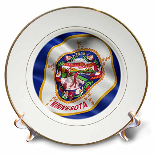 3D Rose Us State Flag of Minnesota Waving in the Wind Porcelain Plate, 8"