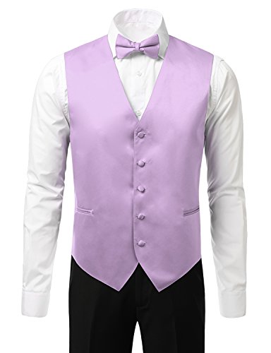- Title : IDARBI Men's 4 Piece Set Dress Vest with Bowtie, Necktie, and Handkerchief LAVENDERWHITE S