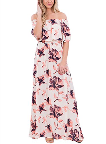 -. Title : VIGVOG Women's Boho Floral P.R.Int Off Shoulder Maxi Casual Dress with Short Sleeves ¡