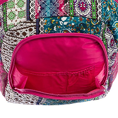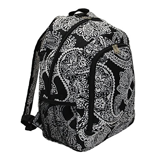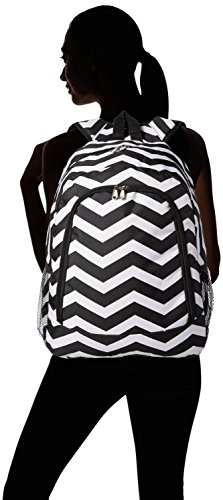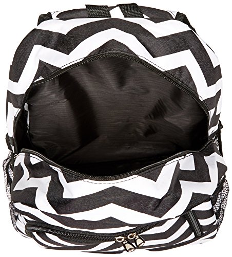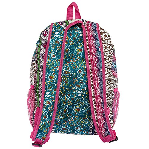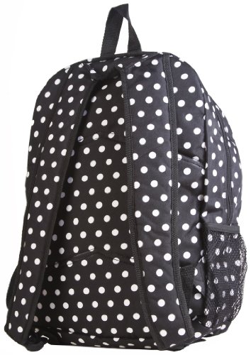 -. Feature : Polka dot backpack with multiple compartments featuring mesh side pockets and padded adjustable straps / 16.5" x 13" x 6.5" / Pockets: 2 interior slip, 3 exterior