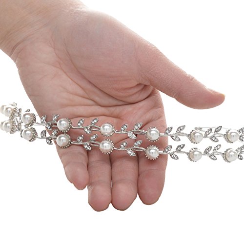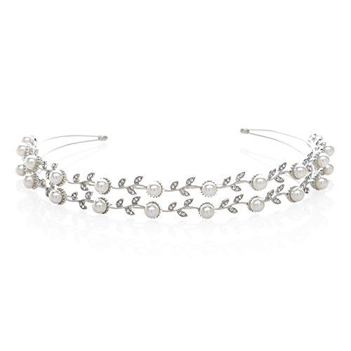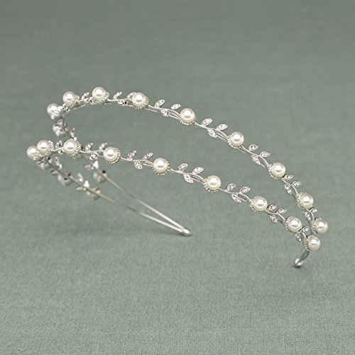 -. Feature : A elegant double band bridal headband with lustrous pearls and rhinestone leaves. This headpiece would be a great choice for a bride or for any special occasion / Material: simulated pearls, crystals, rhinestones, alloy; Color: silver / Size: approximately 1 inch in height, 5 1/2 inches in diameter / Returns: 30 Days Quality Guaranteed; 100% Money-Back Risk Free Purchase; Plz be sure purchase from brand SWEETV / Wrapping: Come with SWEETV brand signature gift box ideal for Bridal, Wedding, Bridesmaids Gifts, Prom, Birthday, Holiday or Anniversary Gifts