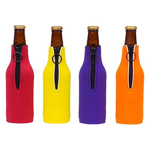 Four(4) bottle coolers with zippers in 4 individual colors - Red, Yellow, Purple, Orange