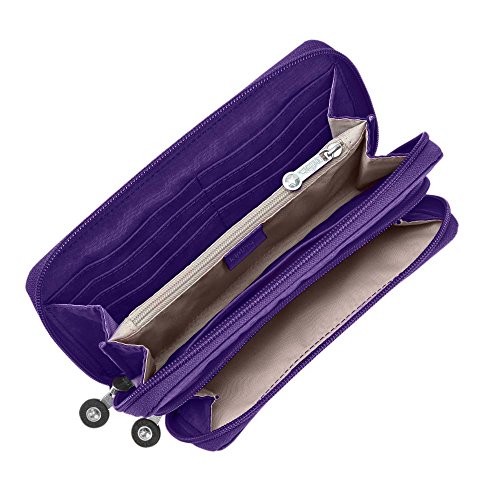 -. Feature : Outer front zip pouch / Inside: six credit card slots, billfold, center zip divider
