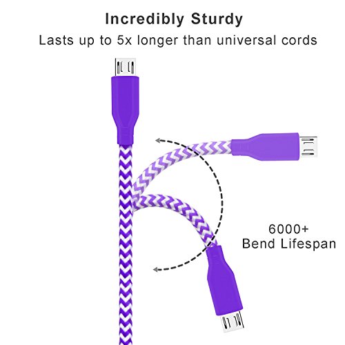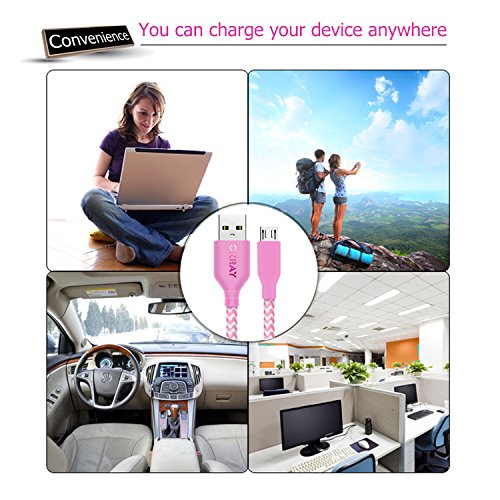 OKRAY 3 Pack 10ft 3M Durable Braided Nylon Woven Tangle-Free Micro USB 2.0 Charge Cable Sync Data Charging Cord Charger for Android, Samsung S7, HTC, Google Nexus, Sony, Nokia, LG (Purple Pink Green)