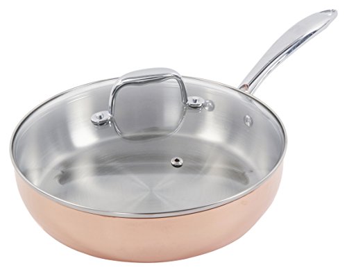 -. Title : Gibson Home Berker Copper Colored Sauté Pan with Glass Lid, 2.5 quart, Stainless Steel
