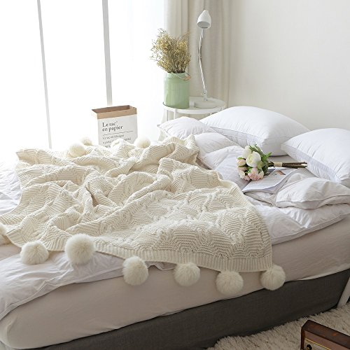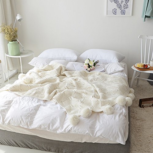 STYLISH DESIGN - The luxurious blanket has a Diamond knit pattern and Handmade Pom ball, which not only brings coziness, but also provides special style to your home. In addition, white can be easily matched with different room decorations.