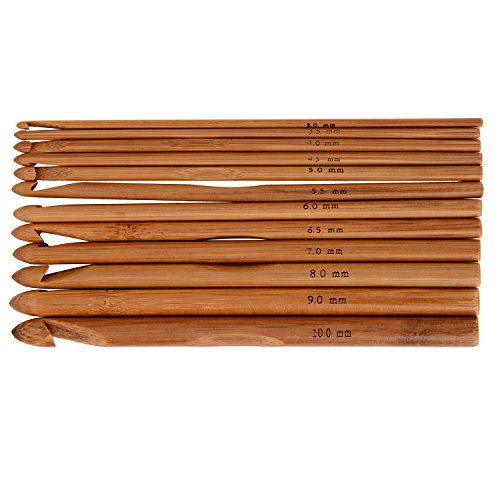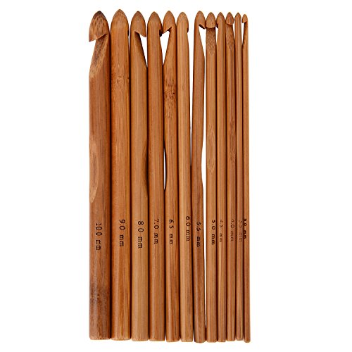 Bamboo crochet diameters: 12 pieces of crochets of different diameters: 3.0 mm, 3.5 mm, 4.0 mm, 4.5 mm, 5.0 mm, 5.5mm, 6.0 mm, 6.5 mm, 7 mm, 8 mm, 9 mm and 10.0 mm