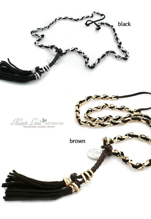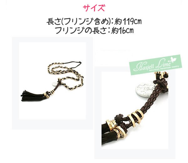 ロングチェーンに革紐が編みこまれたシック&クールなネックレスはフリンジとコインチャームがポイント★