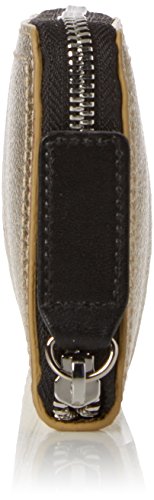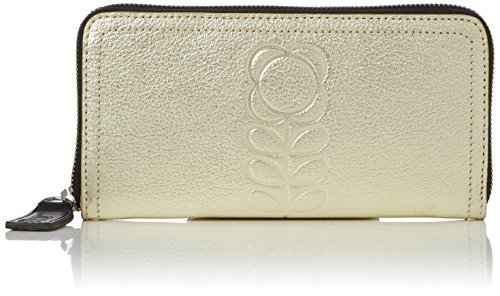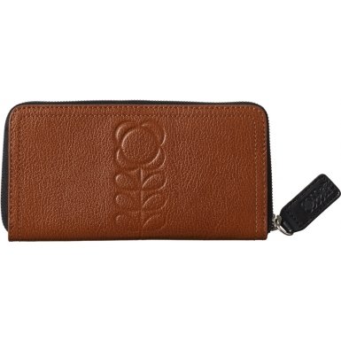 Leather wallet with embossed stem flower, inside details include navy linear stem jacquard lining, slots of notes, cards and a zip compartment for change