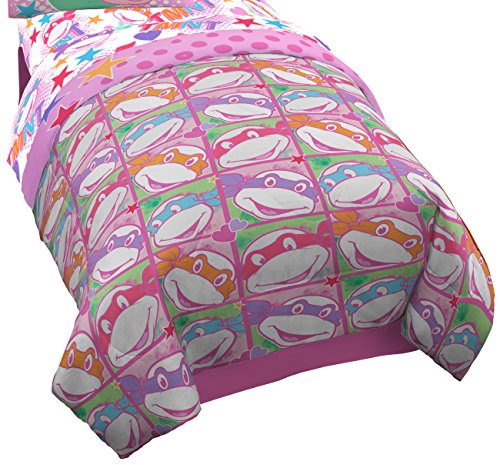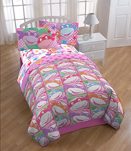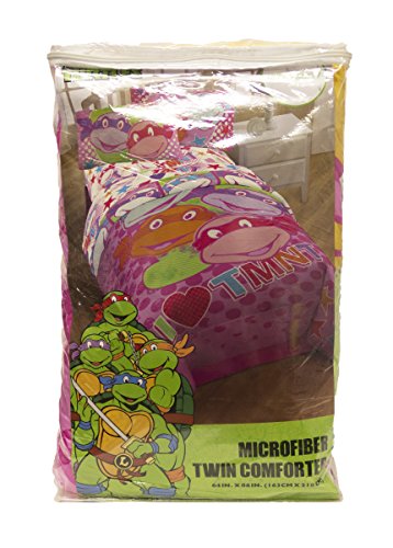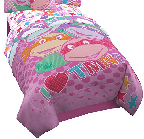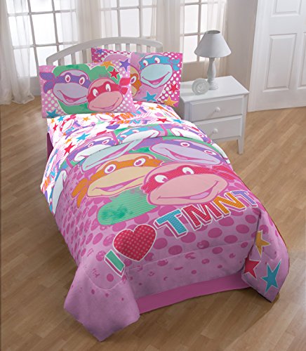 Turtle Power isn't only for boys. Now girl Ninjas can add some adventure and style to their bedrooms with this I LOVE TMNT bedding collection! Made from soft, light weight polyester, this comforter is machine washable. Featuring a bright pink motif with hearts, stars and of course, our four favorite brothers, this comforter is great addition to any bedroom.Feature