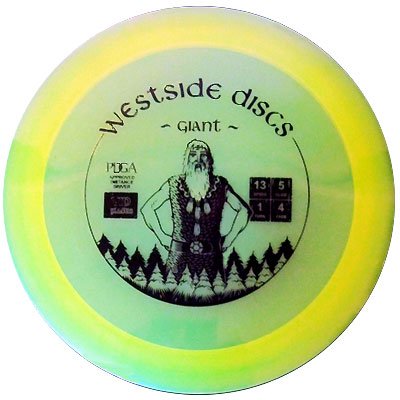 Studio : Westside Golf Discs Publisher : Westside Golf Discs Binding : Misc. Product Description The Giant is our most reliable over stable high speed driver. Made for any size arm the Giant is just what it sounds like, Giant hyzer lines. For professional players it will be your go to hyzer disc for shots over 350 feet. For slower arm speeds it is a good utility disc for all conditions. Many players find that the Giant is a great forehand disc that can hold the high speed of a forehand release. If you are looking for fast and reliable look no further. Colors may vary. Please contact us for more specific weight or color requests. 0