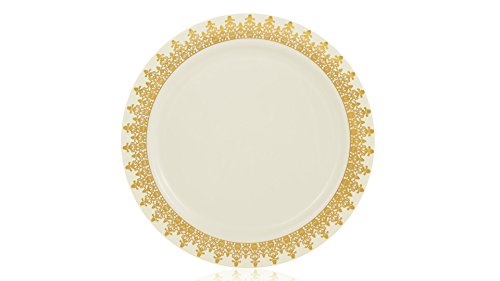 Posh Setting Ornament Collection 10 Pack China Look 10.25 Inch Cream/Gold Plastic dinner Plates, Fancy Disposable Dinnerware