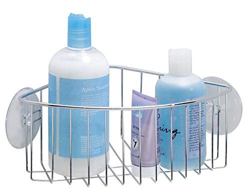 mDesign Suction Bathroom Shower Caddy Corner Basket for Shampoo, Conditioner, Soap - Chrome