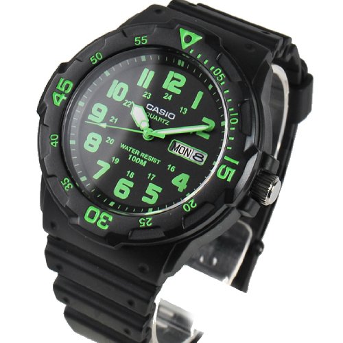 상품명: 카시오 CASIO 맨즈 병행수입품 손목시계 아날로그 데이 데이트 스탠다드 MRW-200H-3B 블랙/그린 해외 모델 [시계]