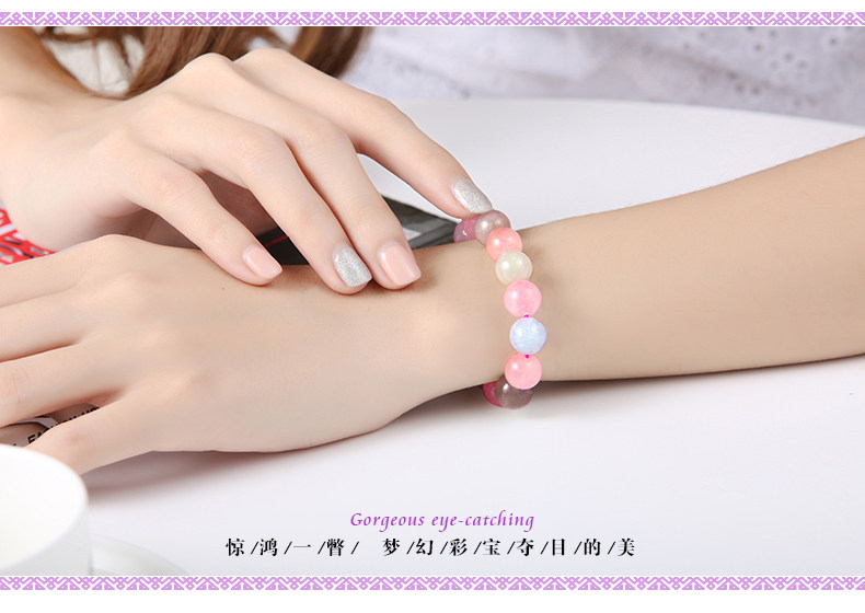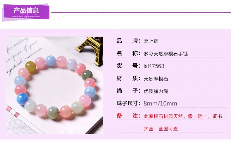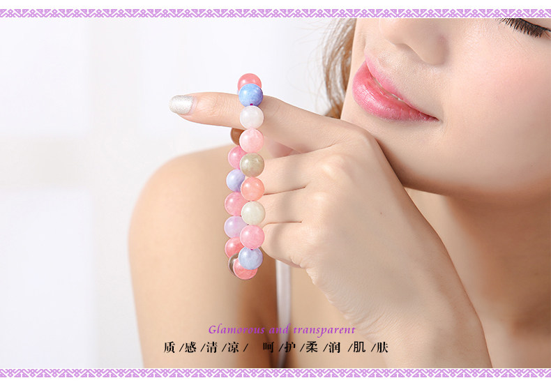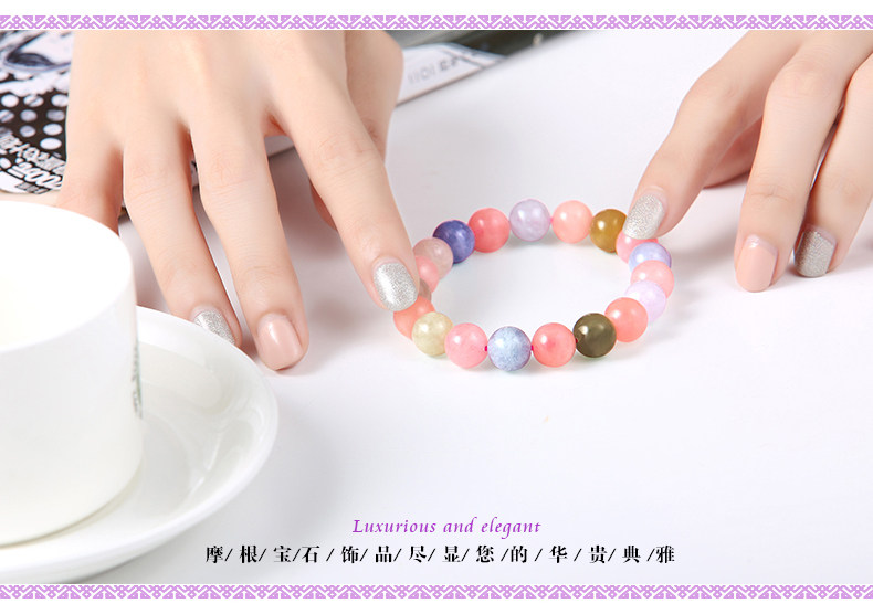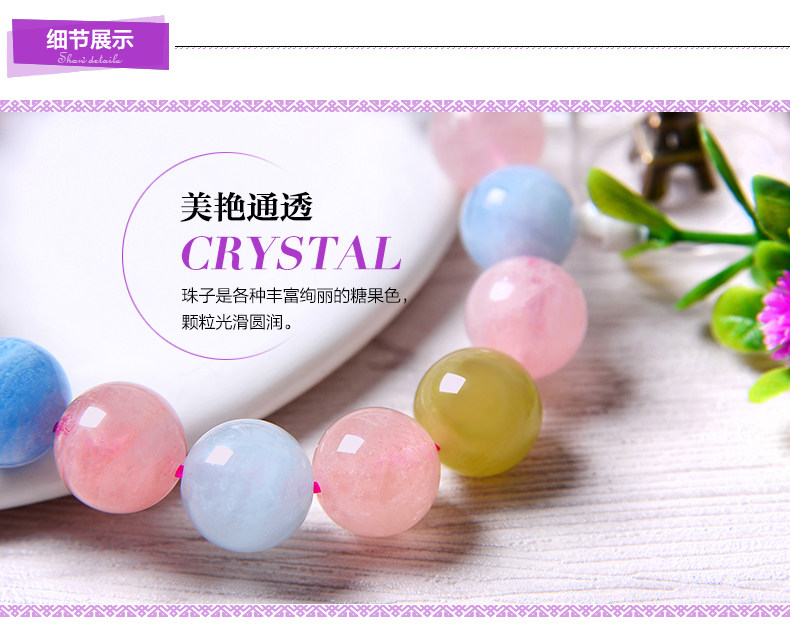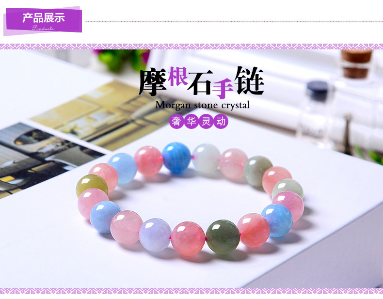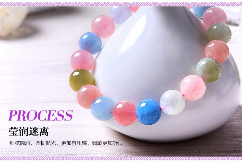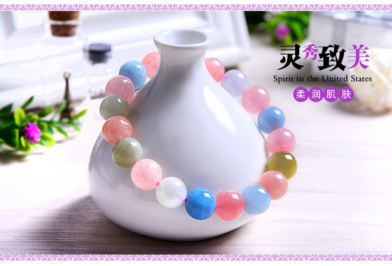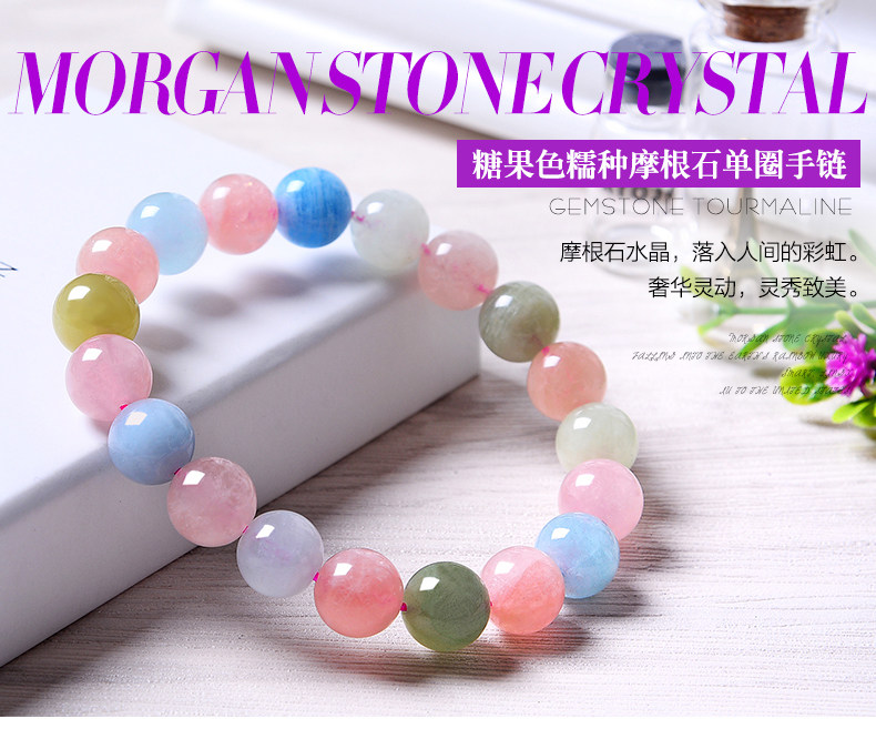 糖果色天然摩根石女款手串 彩虹单圈甜美水晶手链饰品礼物
