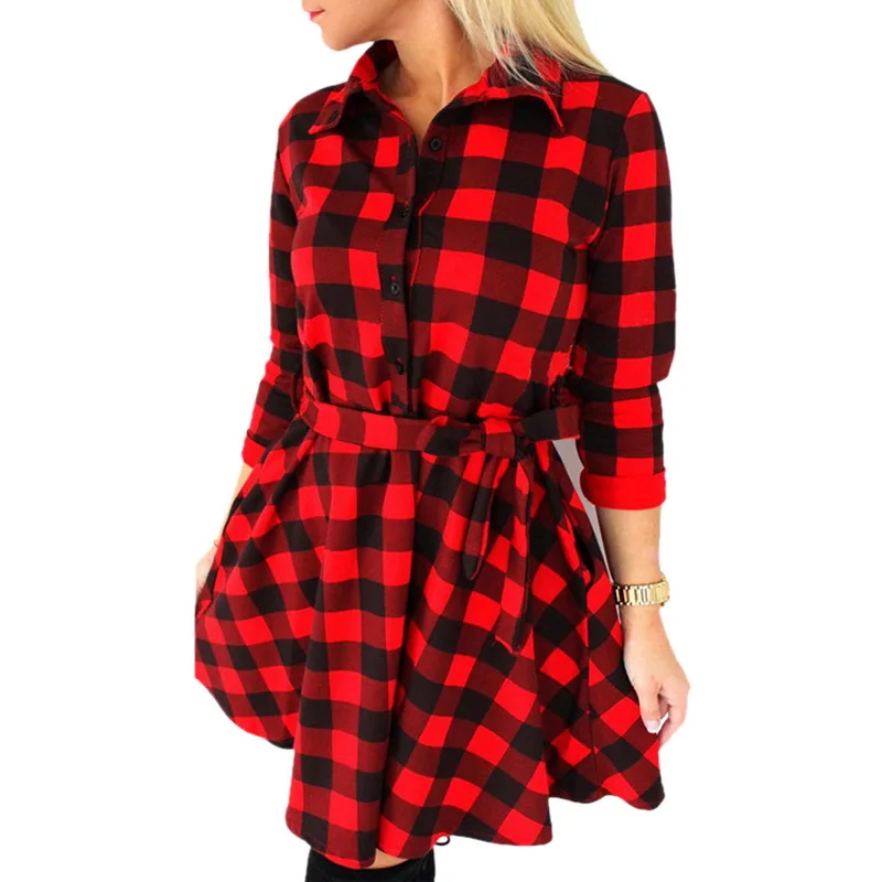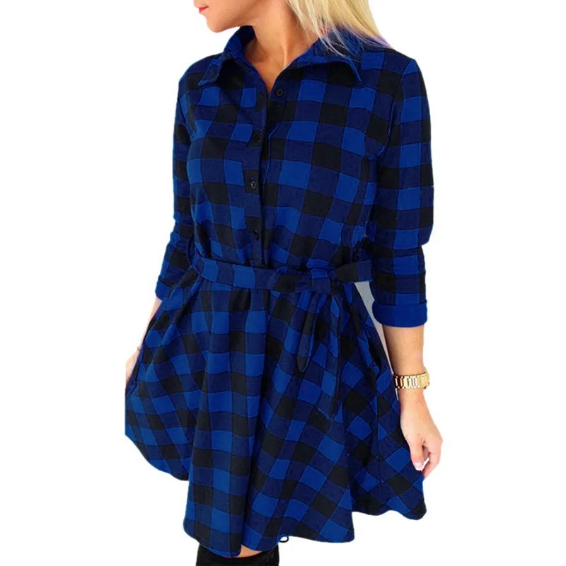 spring autumn shirt dress:fashion 2018 plaid shirt dress