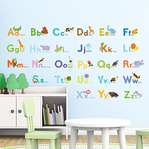 -. Title : Decowall DAT-1608 Watercolour Animal Alphabet Peel and Stick Nursery Kids Wall Decals Stickers