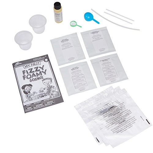 Scientific Explorer My First Fizzy Foamy Science Kit will have children young and old mixing safe powders to create solutions that foam and fizz! In this educational, make-it-yourself kit you’ll make bubbles and even make an erupting volcano! Along the way, you’ll learn some cool science about fizz and foam and how to make it bigger and better. In each of the 7 activities, your child will get to act and think like a real scientist. Foamy Science includes vegetable oil (2oz.), citric acid (0.78oz.), baking soda (1oz.), baking yeast (0.25oz.), 3 color tablets, 3 plastic bags, 2 plastic cups, 2 sticks, a magnifier, measuring spoon, straw and 11-page activity guide. Recommended for children 6 years of age and older.Feature