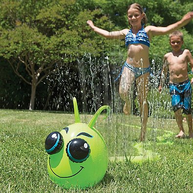 Product Description Your kids will love cooling off on hot summer days with this adorable Caterpillar Sprinkler. This cute bug has sprinklers that shoot water over 3 feet in the air for exciting all-day water play. Easy to assemble and attaches quickly to any standard hose. 0