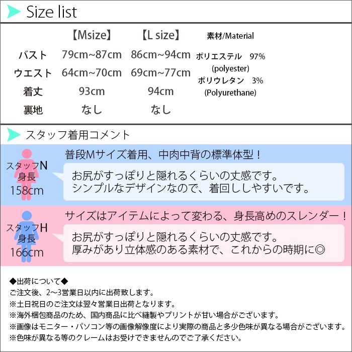 お尻がすっぽりと隠れる丈感なので、体型カバーもしっかりとできて幅広い年齢層の方に大人気です。