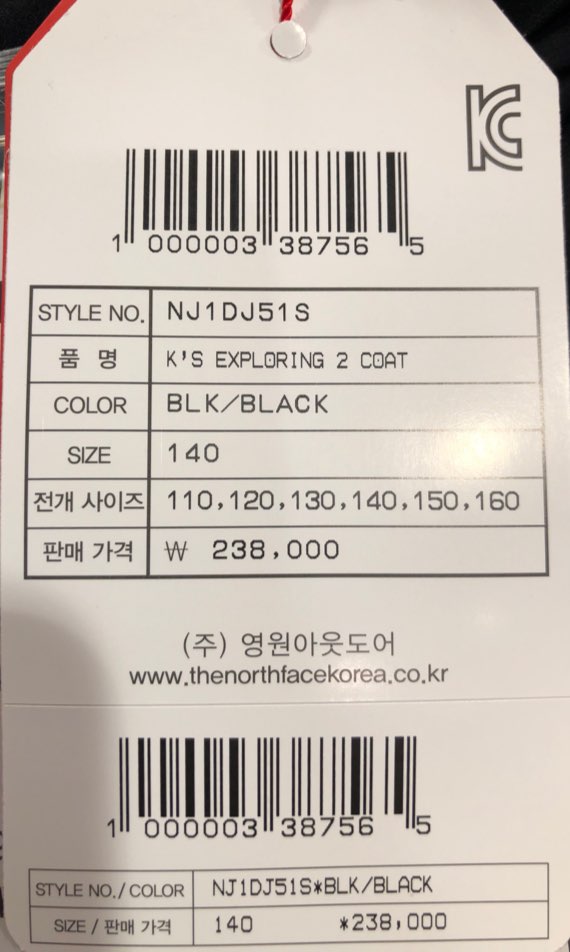 2. 본 제품은 전국 백화점 노스페이스 매장에서 A/S및 교환이 가능합니다.