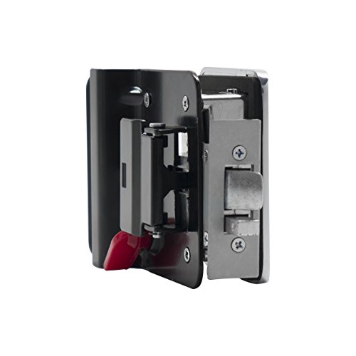 -. Feature : Most common RV entry door lock / Color: Chrome on front black on back / 3-1/2" wide 4-1/4" high / 1-1/4" to 1-1/2" Door thickness / Fits 2-3/4" x 3-3/4" hole cutout