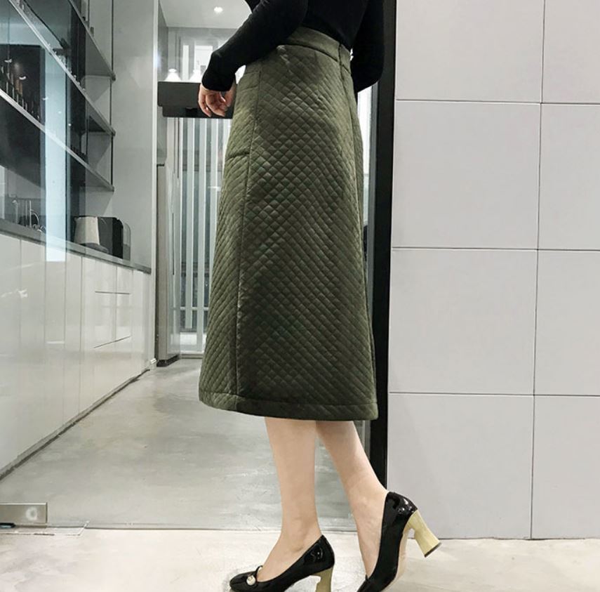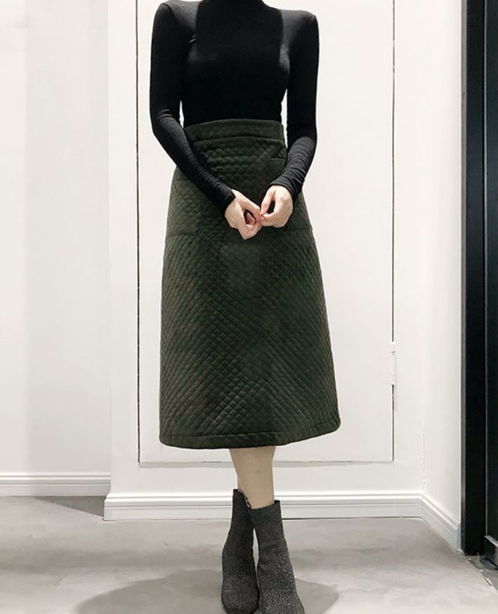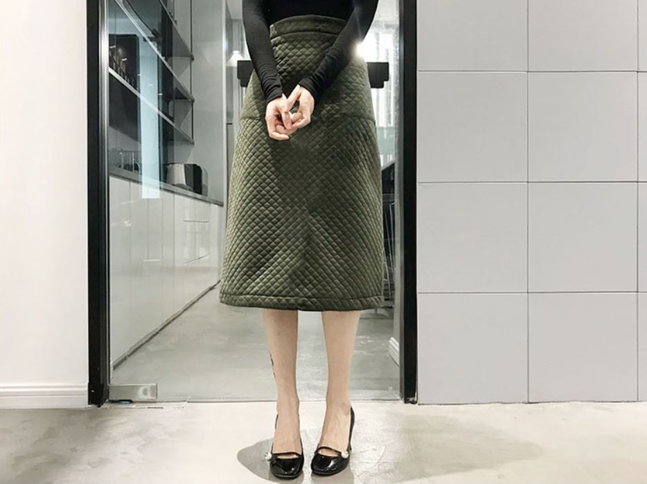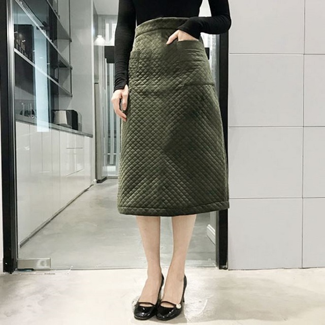 落ち着いた色味とキルティング生地が季節を感じさせる、とってもオシャレなAラインスカート♪