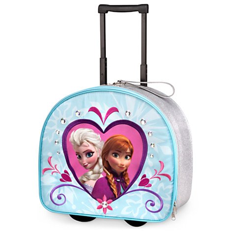 She'll gear-up for fantastic adventures and faraway journeys carrying Anna and Elsa's shimmering, gem-covered travel case equipped with retractable handles and rolling wheels.