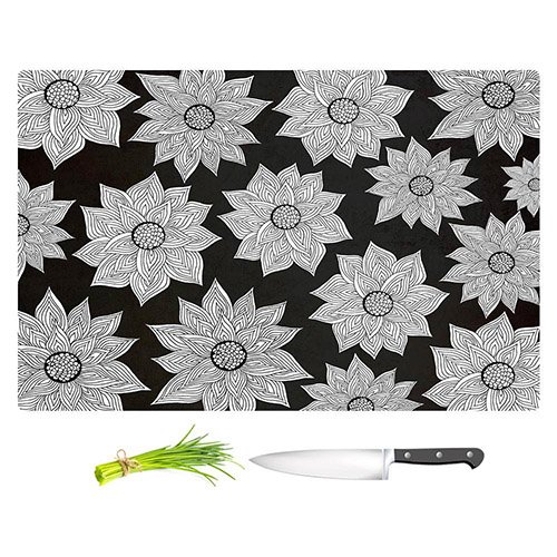 DiaNoche Designs CB-PomGraphicElegantFloral2 Pom Graphic Design-Elegant Floral Unique Kitchen Slicing Dicing Bar Artistic Decorative Cutting Boards from, Large 15" x 11"