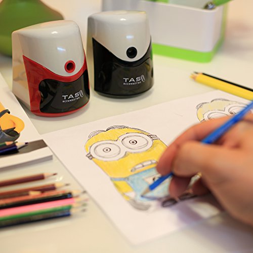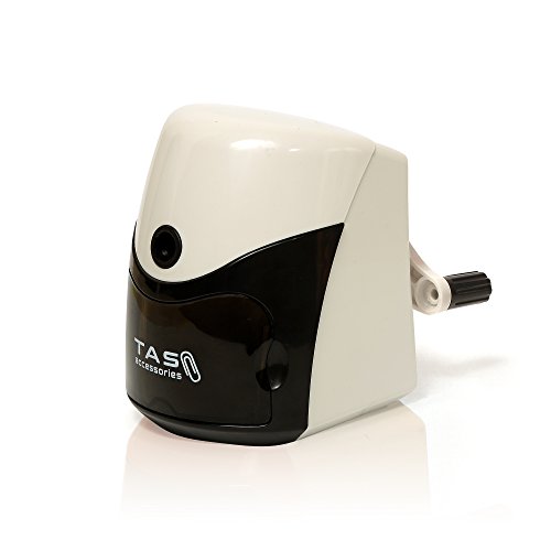 TAS Accessories Manual Pencil Sharpener, Black - No Cords or Batteries , No Need to Pull the Pencil With Auto Suction Function