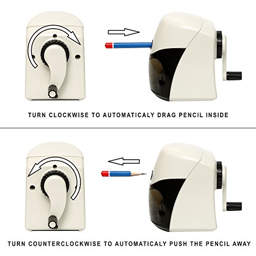 ULTIMATE CONVENIENCE - Automatic suction pulls pencil in when turned clockwise and pushes it out when turned the other way. Easy to create perfect pointed tips with no worry of an uneven sharpen!