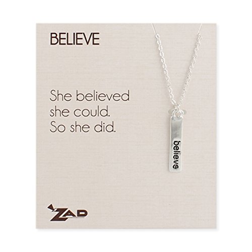 -. Feature : Believe Word Bar Pendant Necklace, 16 Inch / Add a hot new trend look to your accessories with this Believe stamped word necklace. / Pendant necklace with 'Believe' engraved on bar. Comes on card that reads "She believed she could. So she did." / Measurements: 16" long with 2 inch ext, 1/4" x 1" pendant / Perfect for any occasion - Valentine's, Birthday, and so many more! Or just and eye-catching piece for your own collection.