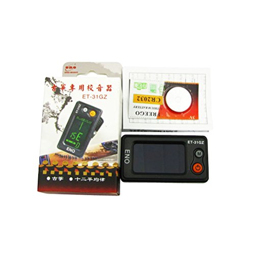 Product Description Item No:Clip on Guzheng Tuner ET-31GZ. Fashion visible Handle best With red/green backlit vertical LCD displays Professional Guzheng Tuner. Tuning items:C(Chromatic),Guzheng . Pickup mode: Vibration sensor. Tuning mode: Auto. Tuning range:27.5HZ-1760Hz). A4 frequency:440HZ. Color:Black. Battery:CR2032. Dimension:58mm×40mm×32mm Package includes: