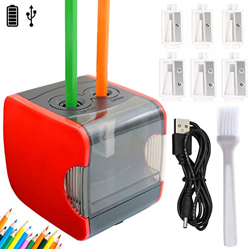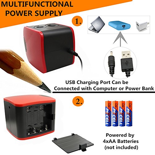 - MULTIFUNCTIONAL POWER SUPPLY: The electric sharpener is powered by 4xAA batteries (not included) or USB charging port, USB charging port can be connected with computer or power bank. Convenience use for School, Home, Office and so on.