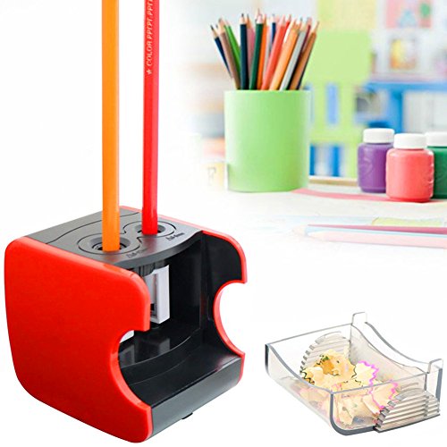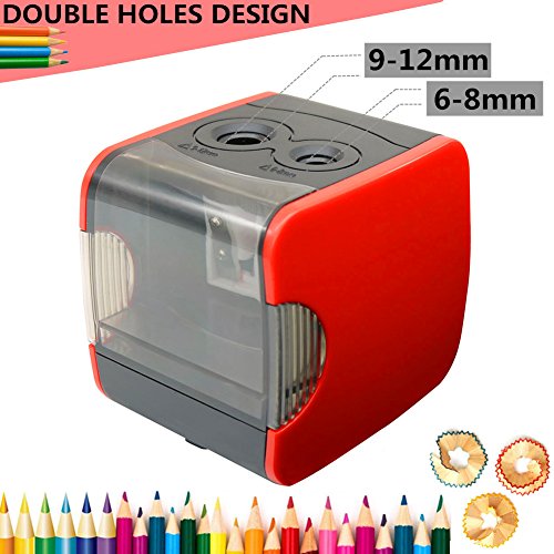 Electric Pencil Sharpener Normei Double Holes, Battery Powerd or USB Charging, Non-skid Rubber Feet, Heavy Duty, Drawing Coloring Pencils Sharpener for School, Home, Office, Studio(Red)