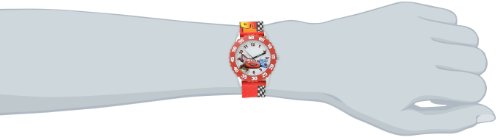 Round Time Teacher Stainless Steel Watch with Disney's Lightning McQueen and Raoul ÇaRoule characters on dial.
