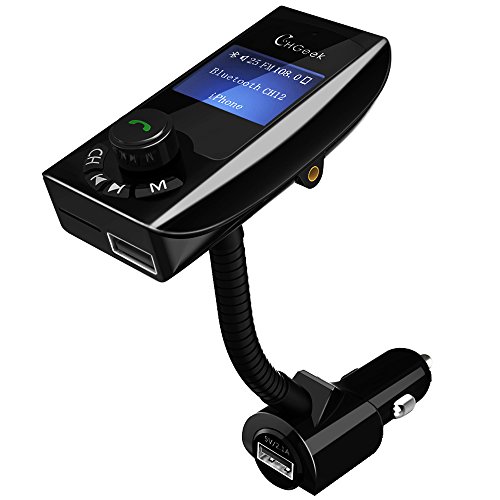 -. Feature : Most Advanced: This radio adapter is especially designed with an on/off switch(the knob) for you to turn off the screen and connection. When you charge your phones and want to listen to the normal radio stations, you can turn off it so that it won't have interference / 4 Playing Sources: It is an absolutely superior gadget to connect your old style cars which assists for FM and MP3 playing with 4 sources: Bluetooth, TF card(Micro SD card), USB flash drive(U disk) and 3.5mm Audio cable(Auxiliary Input). Short press "M" button to switch them / Great Sound Quality: This car kit utilizes the most advanced interference and noise cancellation technology which provides you with crystal clear sound and stable audio signal. Now you can listen the audio book and route direction while driving / Dual USB Car Charger: 2 USB ports can be used simultaneously. One rated at 5V/2.1A is more than enough for any phones and even tablets. The other one outputs 1A which is designed for reading the USB flash drive as well as charging your phone. Attention: Total working power CAN NOT EXCEED 12W / To Your SurP.R.Ise: Built-in a microphone that allows you to enjoy convenient hands-free calling. Once you set it on desired FM frequency, it stays on! Support A2DP, voice prompt, answer/ hang off/reject/redial calls