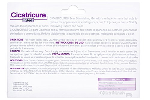 • Cicatricure Gel for scars clinically proven formula improves the appearance of skins evenness and tones while moisturizes the skin.