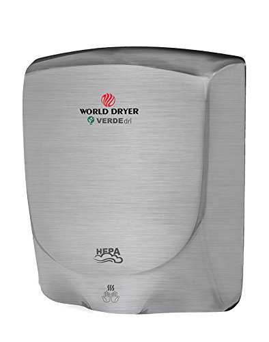 World Dryer Q-973A VERDEdri Hi-Speed Surface-Mounted ADA Compliant Hand Dryer, Stainless Steel, 110-240V, Brushed