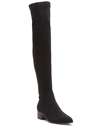 Studio : Donald J Pliner Publisher : Donald J Pliner Binding : Shoes Product Description Upper is donald j pliner's signature stretch crepe elastic. stretch crepe is easy to pull on, hugs the leg, and will not lose it's elasticity. boot is slightly over-the knee. almond shaped toe. 1 inch stacked, polished heel. outsole is leather with mini lug sole on forepart. 0