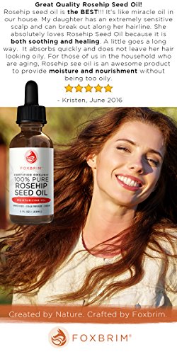 -. Feature : ACHIEVE INCREDIBLE RESULTS WITH A SINGLE INGREDIENT - Just a few drops of our 100% Pure Organic Rosehip Oil is your go-to oil for almost every beauty need including rejuvinating dry, dull and irritated skin, slowing and reducing visible signs of aging such as wrinkles and fine lines, fading age spots, discoloration and hyperpigmentation and reducing the appearance of burns and blemishes / REVIVE TIRED AND DULL HAIR & SKIN - Supply your skin with much needed vitamins, antioxidants and essential fatty acids, such as Vitamins A & C, Linoleic & Linolenic Acid (Omega-3 & 6), Lycopene (antioxidant) and Beta-carotene (antioxidant). Get marvelous, beautifully nourish skin and hair. / BENEFITS THAT GO BEYOND - There are SO many great uses and benefits of this time-tested oil. How will you begin enjoying it? Embrace smooth, even and radiant skin. Fade unsightly wrinkles and well formed fine lines. Effectively reduce deep scars and red marks. Nourish dry, brittle hair. / USE ONLY THE BEST - Foxbrim provides you this amazing Rosehip oil in its premium form - 100% Pure, Virgin, Cold Pressed, Unrefined and USDA & EcoCert Certified Organic. We set an industry standard for sourcing the freshest, purest certified organic rosehip seed oil available. Cold pressed in extremely small batches, virgin and unrefined, you can begin enjoying the extensive range of benefits from this proven nutrient-rich oil. Simply without comparison. / BACKED BY FOXBRIMS AMAZING QUALITY GUARANTEE - Each and every Foxbrim product is backed by our amazing guarantee. Your purchase today is risk-free. Try our 100% Pure Organic Rosehip Seed Oil Today. If youre not completely satisfied let us know for a full refund. Simple as that. Why wait? Order now!