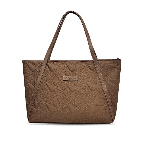 -. Feature : ❤Dimensions: 15.7inch(L)*4.3inch(W)*12.2inch(D) / ❤Color: Brown(Warmth), Dark blue(Mature), Silvery Grey(Mystical).Choosing a beautiful color to start your new day. / ❤Material: 100% polyester quilted knitted fabric + PU leather with excellent stitching technic and Embroidery craft. / ❤Design :The unique look for Mature and generous ladies.It can be your laptop handbag,shopping bag or daily use. / ❤Structures: Zip. Interior with 2 pockets for keys、phone、Textbook、wallet ,large capacity to put 15" laptop and other daily essentials.