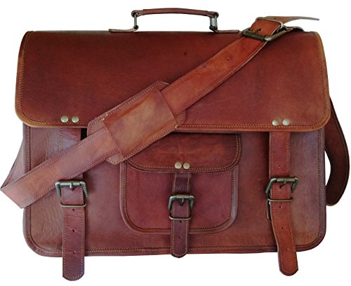 -. Title : 16 Inch Leather Unisex Real Leather Messenger Bag for Laptop Briefcase Satchel ...