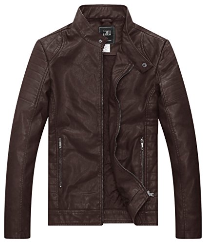 -. Title : ZSHOW Men's Faux Leather Stand Collar Biker Jacket